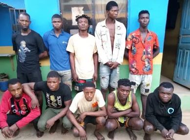 The suspects – Moses Johnson, Chinedu Okechukwu, Oka James, Mathew John, Moses David, Fuhad Sulaimon, Joseph Emmanuel, Stephen Samuel, Ozon Austin and Ope Taiwo were paraded by the state police command on Thursday.